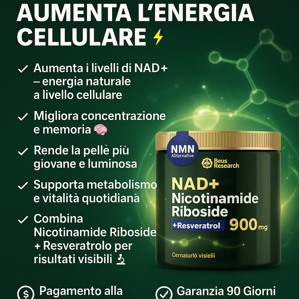 Il NAD+ (Nicotinamide Adenine Dinucleotide) è una molecola essenziale presente in ogni cellula del corpo.